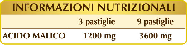 Acido (L-)malico, cellulosa microcristallina°, gomma arabica°, silicio biossido°°, magnesio stearato di origine vegetale°°.