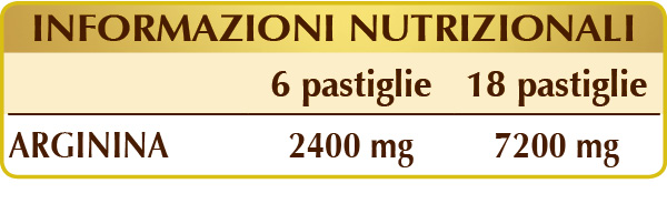(L-)Arginina, cellulosa microcristallina°, gomma arabica°, silicio biossido°°, magnesio stearato di origine vegetale°°.