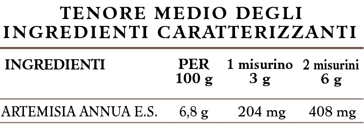 Maltodextrin (Maltodestrine da mais o riso), Artemisia annua leaf extract.