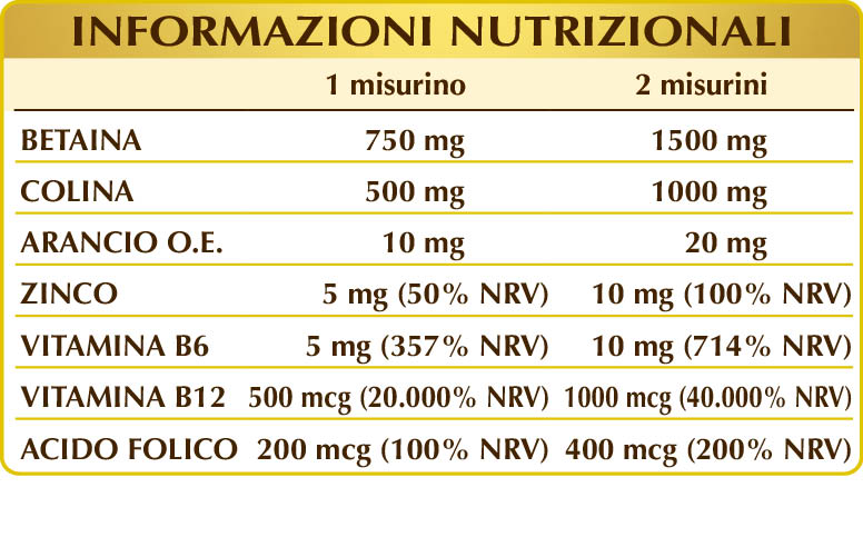 *Effetto benefico ottenibile con un’assunzione giornaliera di betaina pari a 1,5 g (1500 mg).