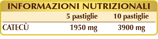 Catecù (Acacia catechu) gomma, cellulosa microcristallina°, silicio biossido°°, magnesio stearato di origine vegetale°°.