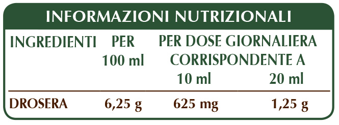 Glicerina vegetale bidistillata, acqua pura, drosera (Drosera ramentacea) erba E.I.L.