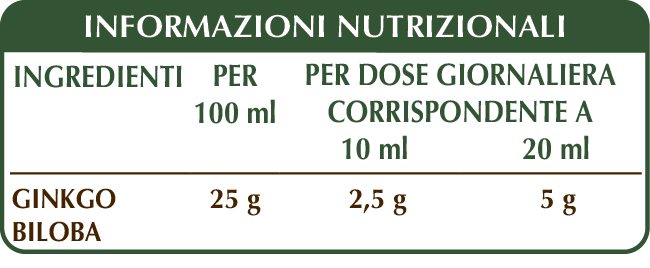 GINKGO BILOBA Estratto integrale Liquido analcoolico