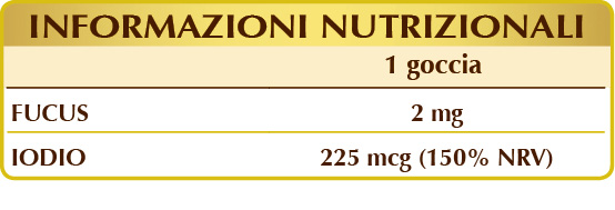 Glicerina vegetale bidistillata, acqua pura, fucus o quercia marina (Fucus vesiculosus) tallo (alga) E.I.L., fruttosio, potassio ioduro.
