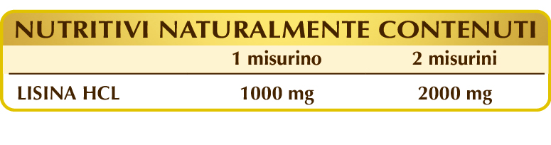 Integratore di lisina utile in caso si intenda aumentare l’apporto di tale aminoacido essenziale nella dieta.