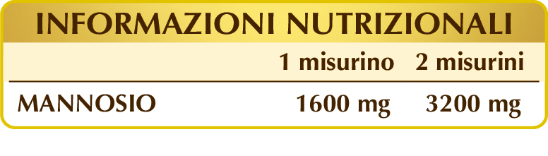 Integratore di mannosio utile in caso si voglia aumentare l’apporto di tale nutritivo nella dieta.