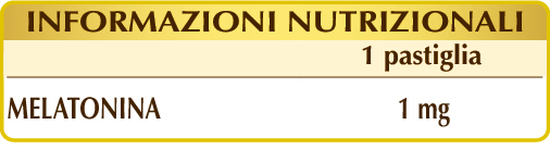 *Gli effetti benefici si ottengono con l’assunzione, poco prima di coricarsi, di: 1 mg di melatonina (sonno); un minimo di 0,5 mg il primo giorno di viaggio, proseguendo per alcuni giorni dopo l’arrivo a destinazione (jet-lag).