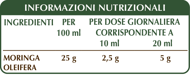 MORINGA OLEIFERA Estratto integrale Liquido analcoolico
