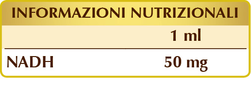 Integratore di NADH, coenzima naturalmente sintetizzato dall’organismo che partecipa a livello cellulare ai processi preposti alla produzione di energia. Una sua integrazione può risultare utile in quanto la sua presenza tende a ridursi in particolari condizioni e con l’avanzare dell’età.