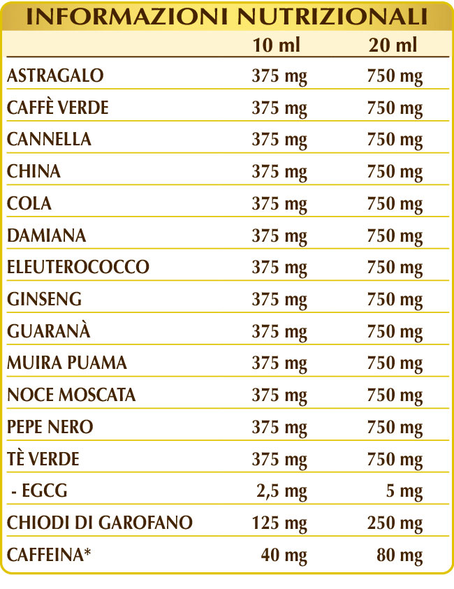 Tabella nutrizionale