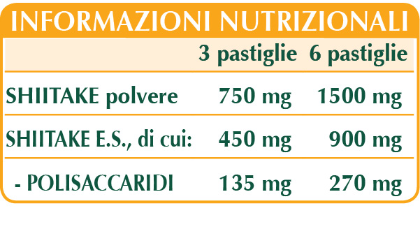 Integratore alimentare a base di shiitake, fungo commestibile ampiamente usato nella cucina orientale per il suo valore nutrizionale e che favorisce le naturali difese dell’organismo.