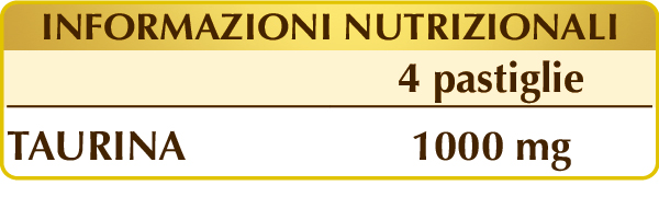 Integratore alimentare di taurina, aminoacido coinvolto in numerosi processi metabolici dell’organismo tra cui la sintesi degli acidi biliari.