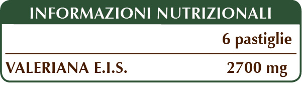 Valeriana (Valeriana officinalis) radici E.I.S., cellulosa microcristallina°, gomma arabica°, silicio biossido°°, magnesio stearato di origine vegetale°°.
