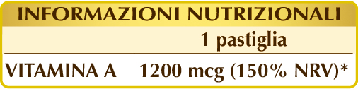 *Quantità equivalente a 4000 UI o unità internazionali. NRV= Valore Nutritivo di Riferimento.