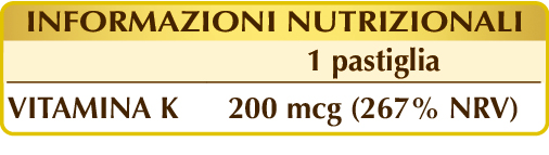 La vitamina K contribuisce alla normale coagulazione del sangue e al normale mantenimento della salute delle ossa.